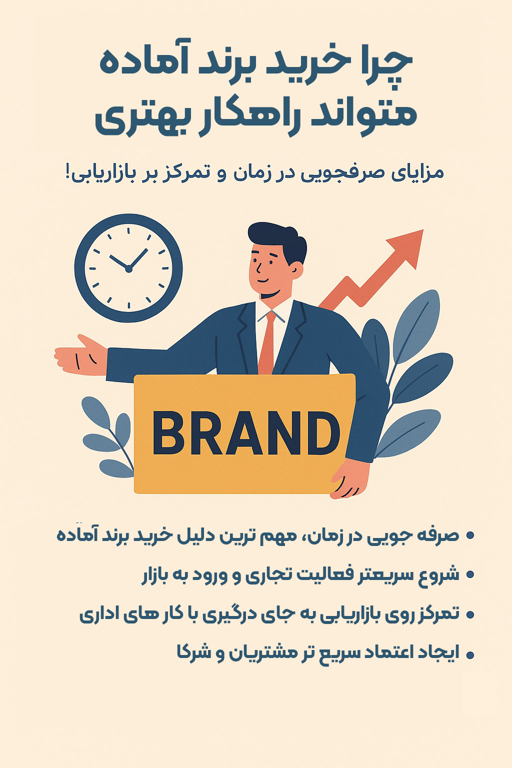 با توجه به این مزایا، خرید برند آماده میتواند یک مسیر هوشمندانه، سریع و کمریسک برای ورود به بازار رقابتی امروز باشد.